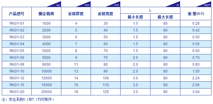 RK01型(防火环型)吊装带参数表